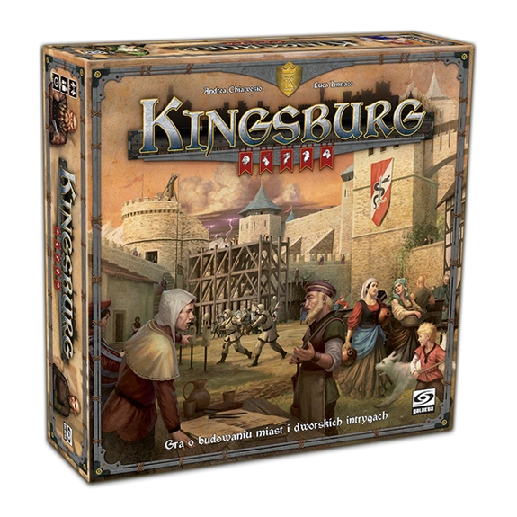 KINGSBURG (Królewiec?) to reedycja tej doskonałej gry planszowej, która zawiera zarówno wersję podstawową jak i rozszerzenie "To forge a realm". Gra łączy w sobie elementy budowy miasta (city building) oraz zarządzania kośćmi (dice managment). Jest to jeden z tytułów, którego nie powinno zabraknąć w kolekcji każdego fana gier planszowych.