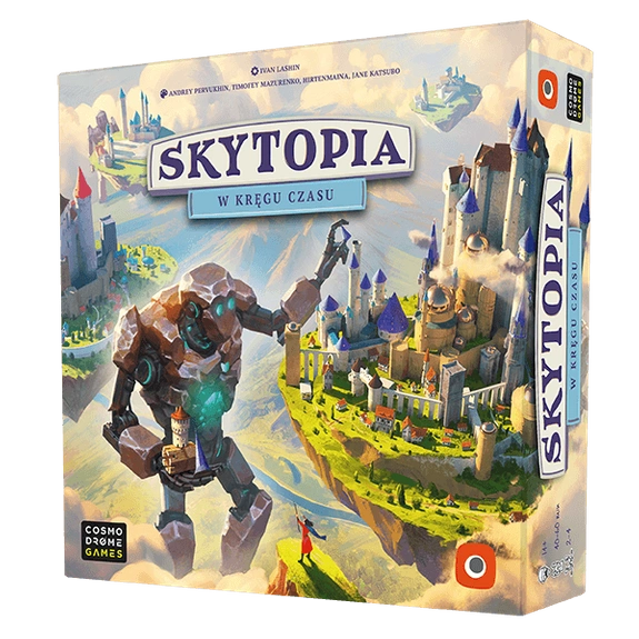 Skytopia to strategiczna gra planszowa Ivana Lashina, autora kultowego już Smartphona Inc. Tym razem, zamiast zajmować się produkcją telefonów komórkowych, przeniesiecie się do fantastycznego świata Skytopii, gdzie raz na sto lat podniebne miasta rywalizują ze sobą o zaszczytne miano Stolicy Przestworzy. Każdy z was stanie na czele jednej z czterech metropolii, wykorzystując potężnych Golemów do budowy majestatycznych Wież. Skytopia łączy w sobie proste zasady rozgrywki z ciekawym wykorzystaniem dice placement. Symbolizujące Golemy kości będziecie umieszczać na kartach Wież, rywalizując w wyścigu o ich jak najszybsze zbudowanie i aktywację. Umieszczanie kolejnych fragmentów Wież na waszych planszach Miasta będzie rozbudowywać silniczek akcji, dzięki czemu wasze działania z każdą turą będą coraz potężniejsze! Cosmodrome Games, wydawnictwo znane z takich tytułów jak Aquatica czy Smartphone Inc., po raz kolejny zadbało o fenomenalne wykonanie graficzne swojej gry!